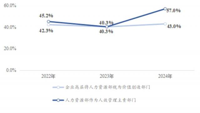 穆胜咨询《2024 中国企业人力资源效能研究报告》的数据显示,57% 的企业将人力资源部作为人效管理的主责部门,而在两年前(2022 年),这项数据仅为 45.2%。