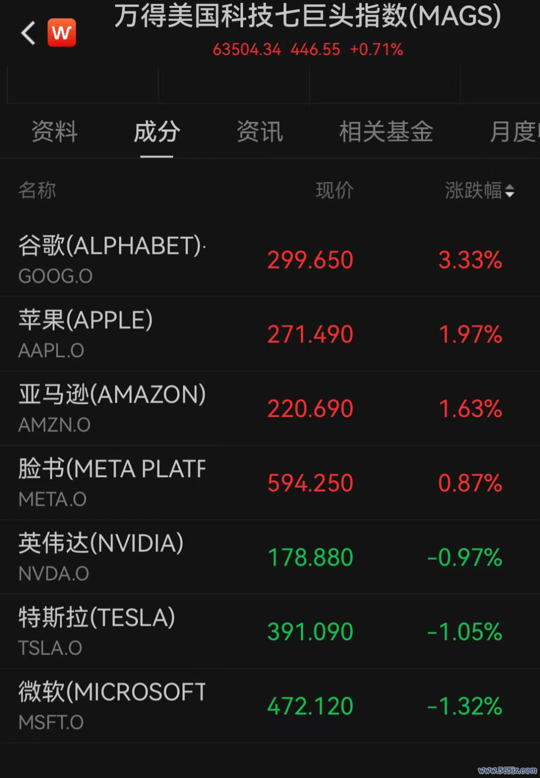 美股大型科技股涨跌不一,谷歌-C、苹果、亚马逊、META均上涨,微软、特斯拉、英伟达均下跌。