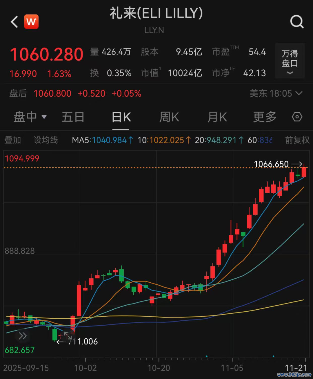 礼来上涨1.63%,市值达10024亿美元,成为全球首家市值超10000亿美元的制药公司。今年以来,礼来累计涨逾35%。德意志银行生物制药股票研究主管James Shin表示,礼来正重新向 “科技七巨头”靠拢。“科技七巨头” 指英伟达、微软等科技领军企业,今年这些公司是推动市场回报的主要力量。