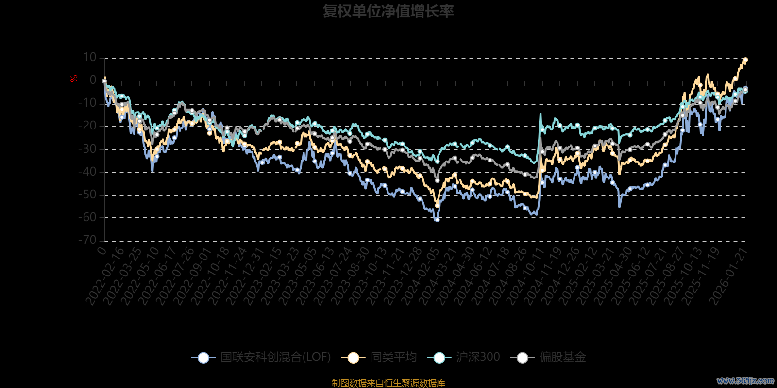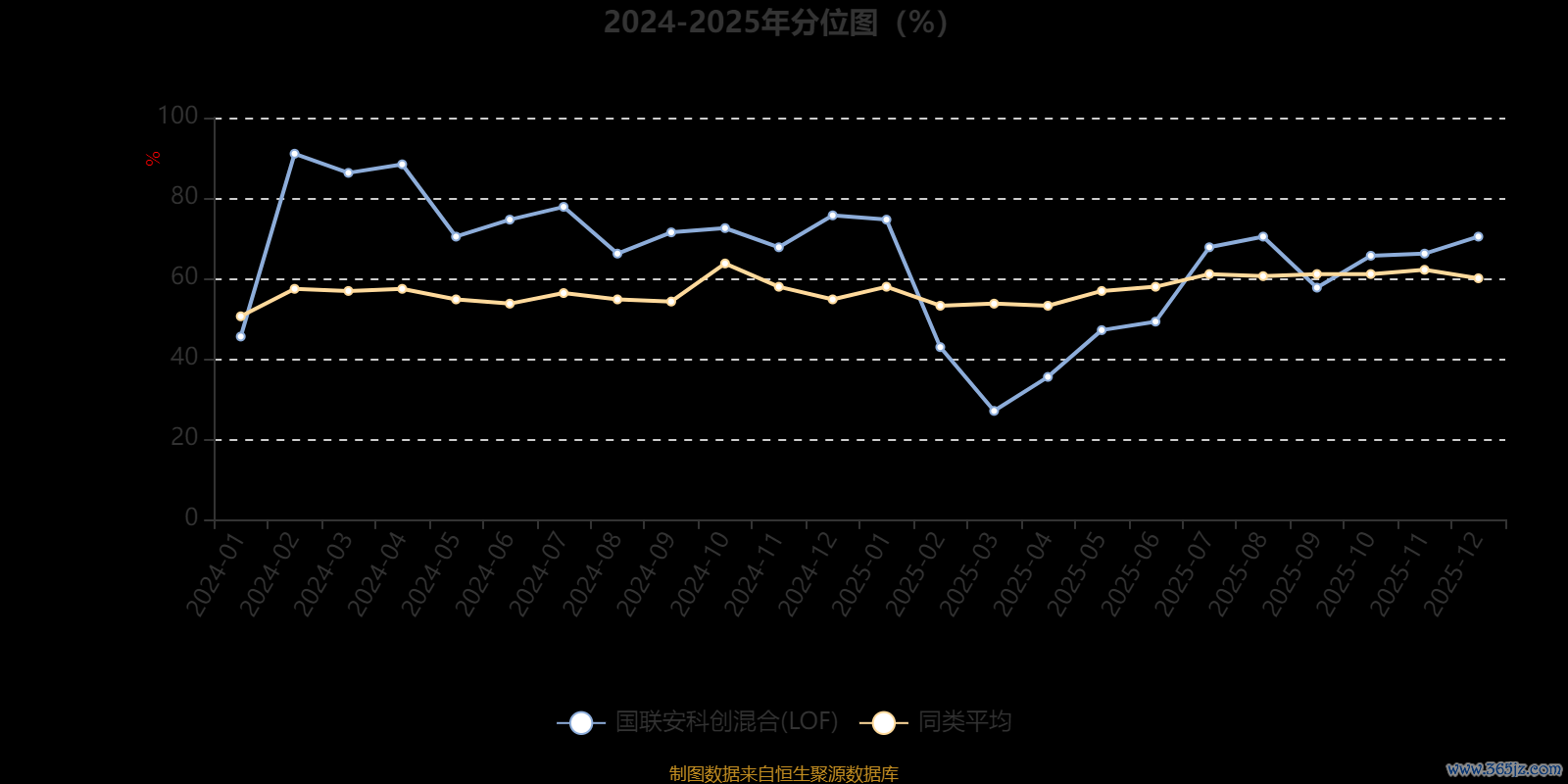 通过所选区间该基金净值增长率分位图金财顺,可以观察该基金与同类基金业绩比较情况。图为坐标原点到区间内某时点的净值增长率在同类基金中的分位数。