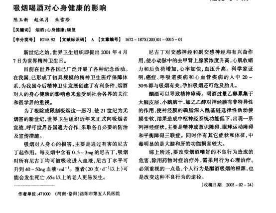 参考资料[1]陈玉新,赵讯月尊享配资,朱雪珍.吸烟喝酒对心身健康的影响[J].临床心身疾病杂志,2003